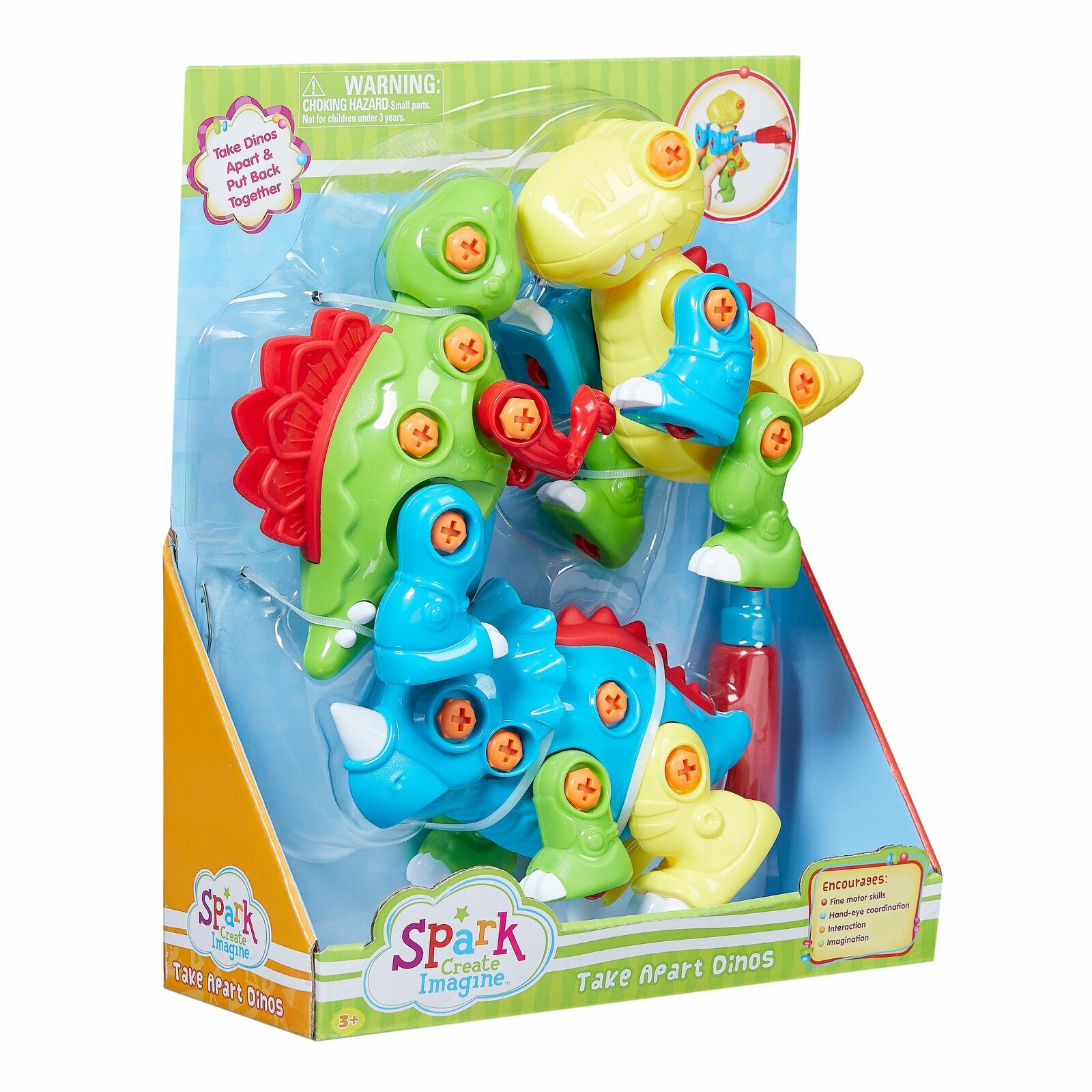 4-Piece Take Apart Dinosaur Play Set: * 4-piece interactive play set includes 3 dinosaurs and 1 screwdriver * Kids can have fun taking dinosaurs apart and putting them back together again * Encourage the development of fine motor skills and hand-eye coordination * All pieces are made from durable and colorful plastic * Includes kid-favorite Tyrannosaurus rex, Stegosaurus, and Triceratops dinosaurs * This set is ready for endless play time fun and is sure to bring a smile to your child's face * Perfect birthday gift, holiday gift, or everyday surprise * Toy is designed for creativity, fun, and imaginative play to aid in your child's healthy development