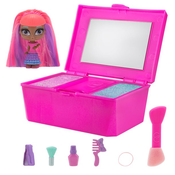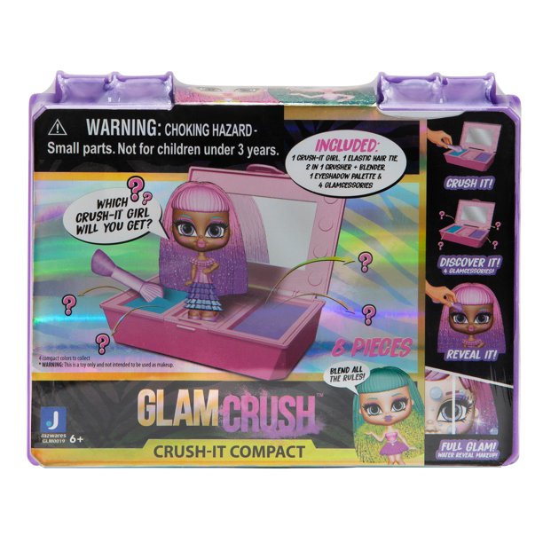 Get ready to blend the rules with the GlamCrush Crush-It Compact. This fabu-lux new toy is a must-have for every mini makeup artist in your life. The Crush-It Compact comes with a chic 3-inch Crush-It Girl, Priya Powder, Coral Contour, Harper Highlighter, or Hadley Highlighter- which girl will you find inside? The detailed dolls are each rocking glittery multi-colored hair and are dressed in a fabulously unforgettable outfit, making them collectible and obsessible. Grab the crushing spatula and break the pretend makeup to reveal 4 amazing glamcessories, like a flat iron or nail polish. Your little diva can unleash their inner stylist and watch their Crush-It Girl go full glam by dampening the sponge tool in ice-cold water and wiping it across her doll’s face. Get the whole glam squad together by finding Priya Powder, Harper Highlighter, Hadley Highlighter, and more. Get ready to go big and go glam, because this is a toy collection you’ll be crushing on. GLAMCRUSH DOLLS SOLD SEPARATELY. TOY NOT INTENDED TO BE USED AS MAKEUP.