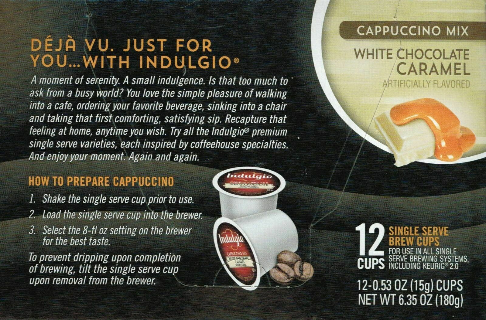 A sweet, creamy treat of white chocolate and delicious caramel flavors swirled into one unbelievable beverage. Discover your Indulgio Moment. Imagine walking into a warm, inviting coffeehouse, ordering your favorite beverage, sinking into a comfy chair and taking that first incredibly satisfying sip. Breathe in the aroma. Revel in the indulgence. Now imagine recapturing that feeling at home with Indulgio – the convenient coffeehouse- quality beverages that make it possible to enjoy your own wonderfully indulgent moment every day.