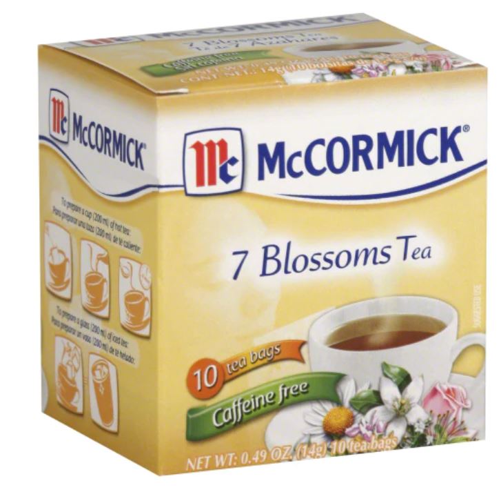 A relaxing herbal tea made with seven fragrant blossoms that include orange, roses, linden flowers, Mexican elder, chamomile, rosemary and lemon balm.