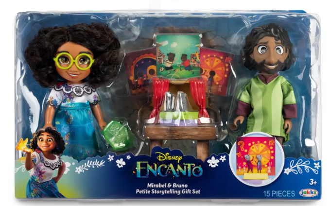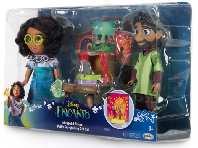 Set has 15 pieces, including Mirabel and Bruno dolls, poncho, two rat friends, four accessories and one vision puzzle piece